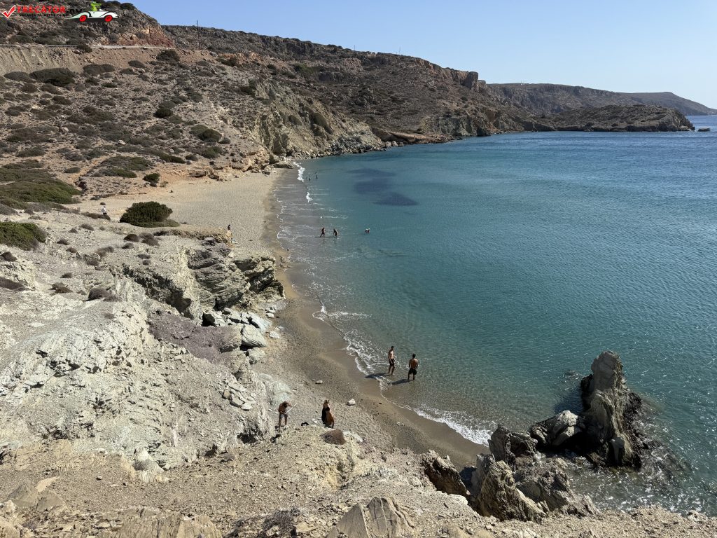 Plaja este alcătuită din trei golfuri mici, toate neorganizat și cu acces pe jos dintr-un mic parcaj. În cel mai nordic golf vei găsi nisip fin și apă turcoaz limpede, în timp ce celelalte două sunt mai stâncoase și au vegetație — tamarisci și câțiva palmieri cretani.
